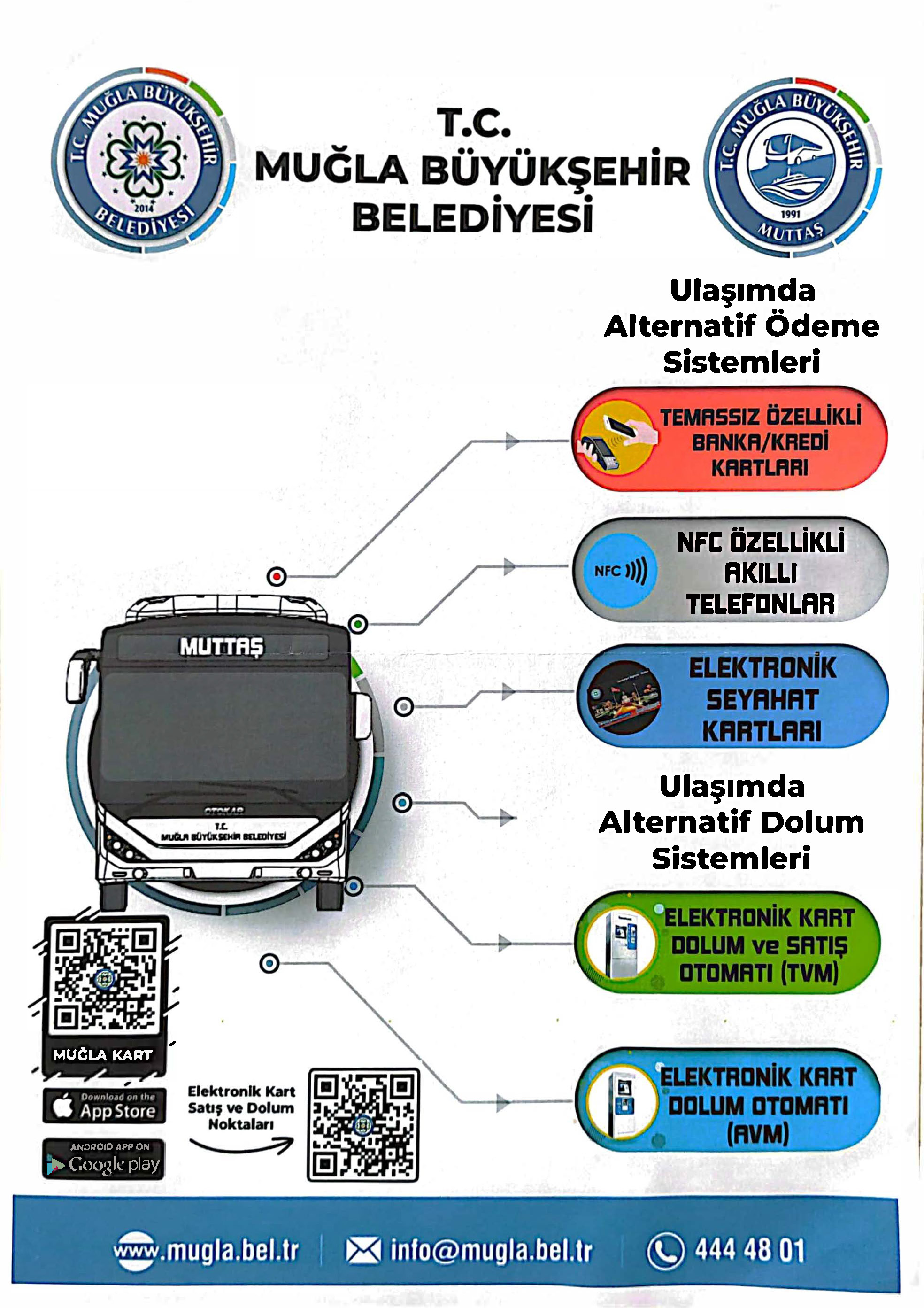 Muğla il genelinde Muğla Büyükşehir Beledesi tarafından gerçekleştirilen kent içi toplu taşıma sistemleri erişilebilirliği yüksek, güvenli, çevre dostu ve ekonomik ve yeni nesil teknoloji ile donatılmış araçlar ile sağlanmakta olup, sürdürülebilir ulaşım kavramının gereksinimlerinin karşılanması ve turizm kenti olan ilimizde toplu taşıma hizmet kalitesinin artırılması amaçlanarak, tüm dünya da ve ülkemizde olduğu gibi, çağdaş, modern, sürdürülebilir ve denetlenebilir toplu taşıma sistemlerinin sadece elektronik ücret toplama sistemleri üzerinden yapılması sağlandığı bildirilmiştir.